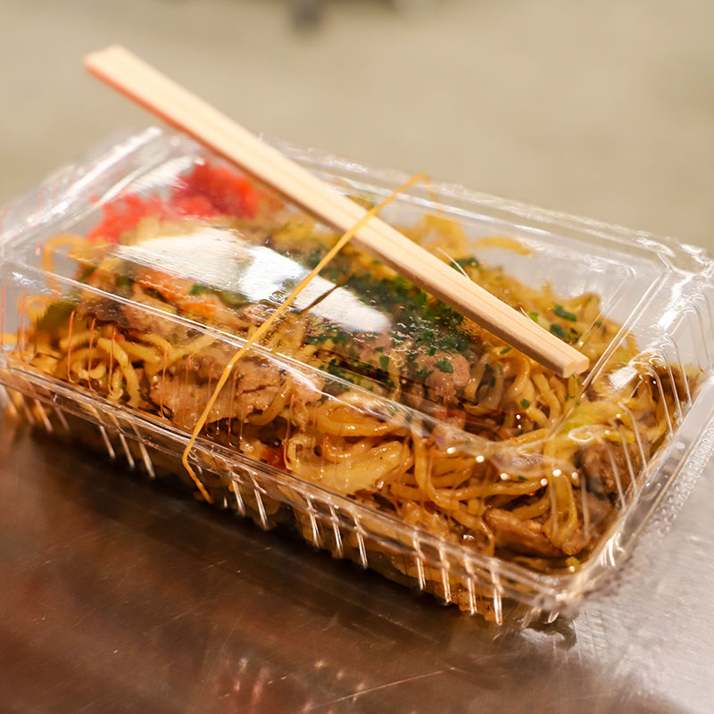 ![]() | 広島の自慢「おたふく焼きそばソース」を使った鉄板焼きそば。是非ご賞味ください。1パック200円です。 | |